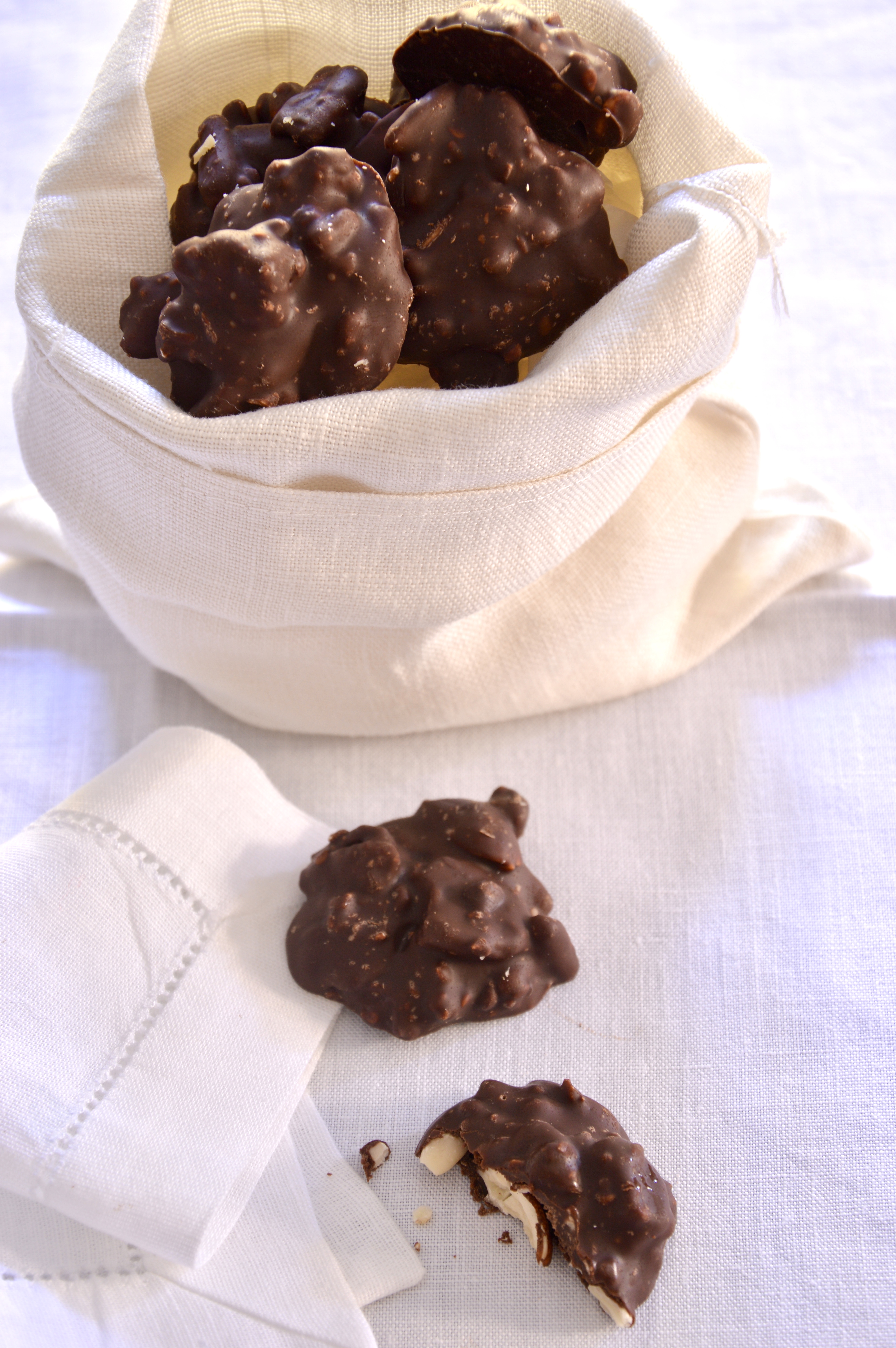 Assodato questo (non me la sento di dissentire, so che sarebbe così!), l’altro pomeriggio dopo aver preparato i torroni mi era avanzato un pochino di cioccolato e un pochino di frutta secca mista (che avevo usato, appunto, per il croccante) così mi sono illuminata e ho deciso di fare i cioccolatini!